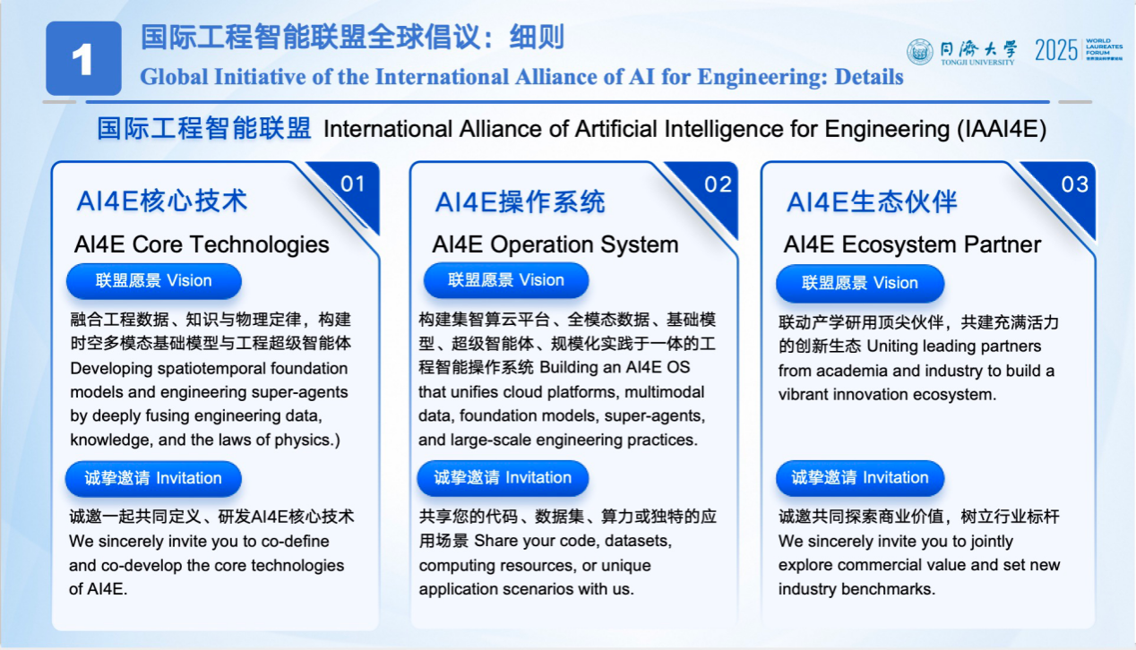 华先胜教授围绕工程智能(AI for Engineering,AI4E)提出三大联盟倡议方向,并诚挚邀请全球伙伴的加入: