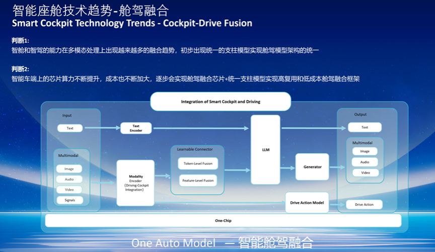 最后,浅谈一下智能座舱的另一技术趋势——智驾和智舱融合。刚刚我们谈到端上的全模态模型,它能处理语音、图像、视频、文本等多类信号。目前,智能驾驶主要处理视觉信号。因此很自然的可以推断,随着车端处理器算力提升与多模态能力增强,我们有望突破当前智驾与智舱分离的现状,实现两者的深度融合,在同一Soc上协同运行,提升车主体验,为智能座舱创造更大的产业价值。