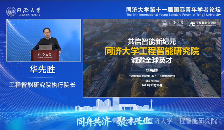 2025年12月30日,同济大学第十一届国际青年学者主论坛顺利举办,论坛聚焦国际学术前沿,汇聚全球青年英才共话未来。我院执行院长华先胜教授作为专业学院代表出席论坛并发言,向海内外优秀青年学者系统介绍同济大学工程智能研究院。现将发言全文整理发布,诚邀天下英才加盟,共赴工程智能新征程、共启发展新纪元!