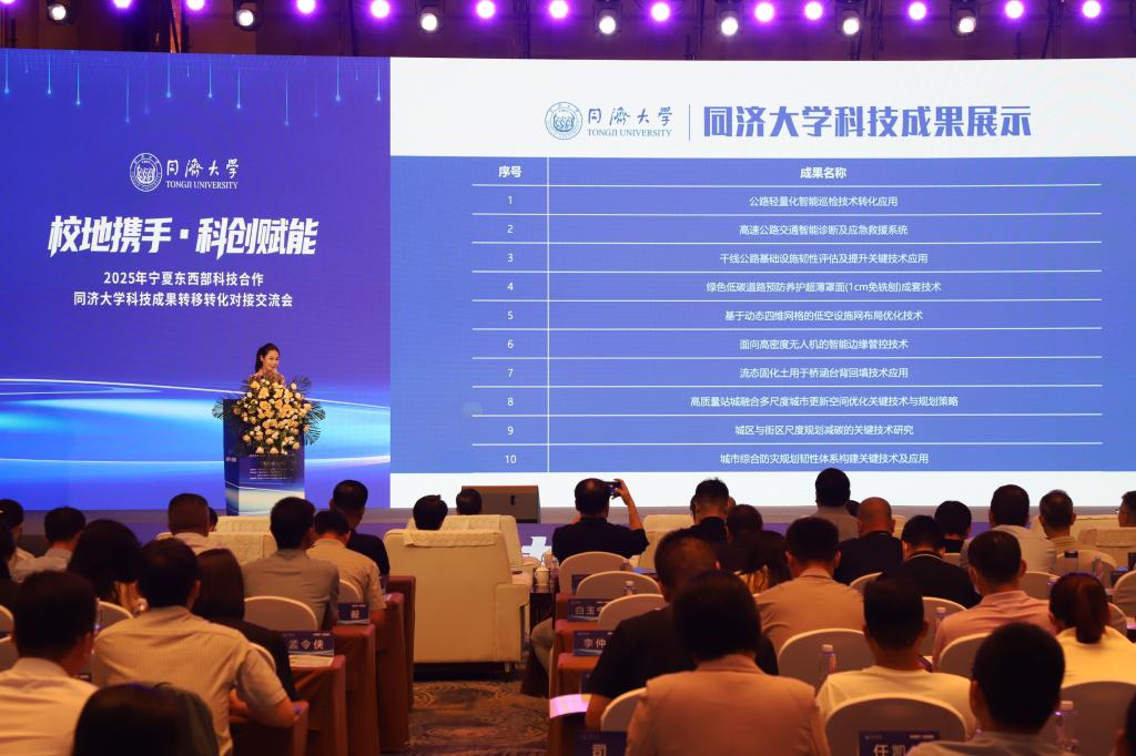 大会以“校地携手·科创赋能”为主题,精准对接同济大学在综合交通、交能融合、交旅融合、城市更新、人工智能、低空经济等领域的科技成果与宁夏在高质量发展过程中的实际需求,推动“东部智力”与“西部需求”的高效融合,构建“科技赋能”与“产业转型”的协同发展新模式。